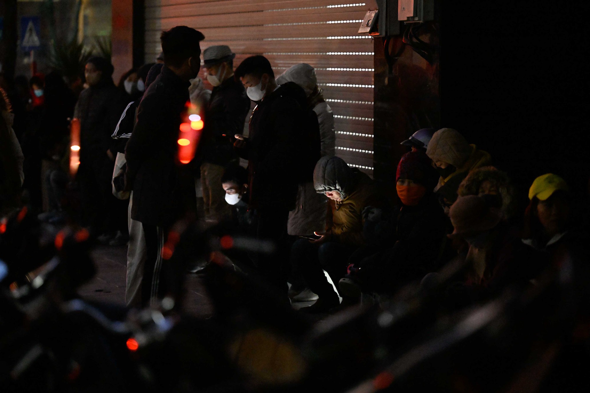 Dưới cái lạnh 10-14 độ, người dân kiên nhẫn đứng chờ, vừa xuýt xoa vì rét, vừa thấp thỏm lo cửa hàng giới hạn lượng bán.