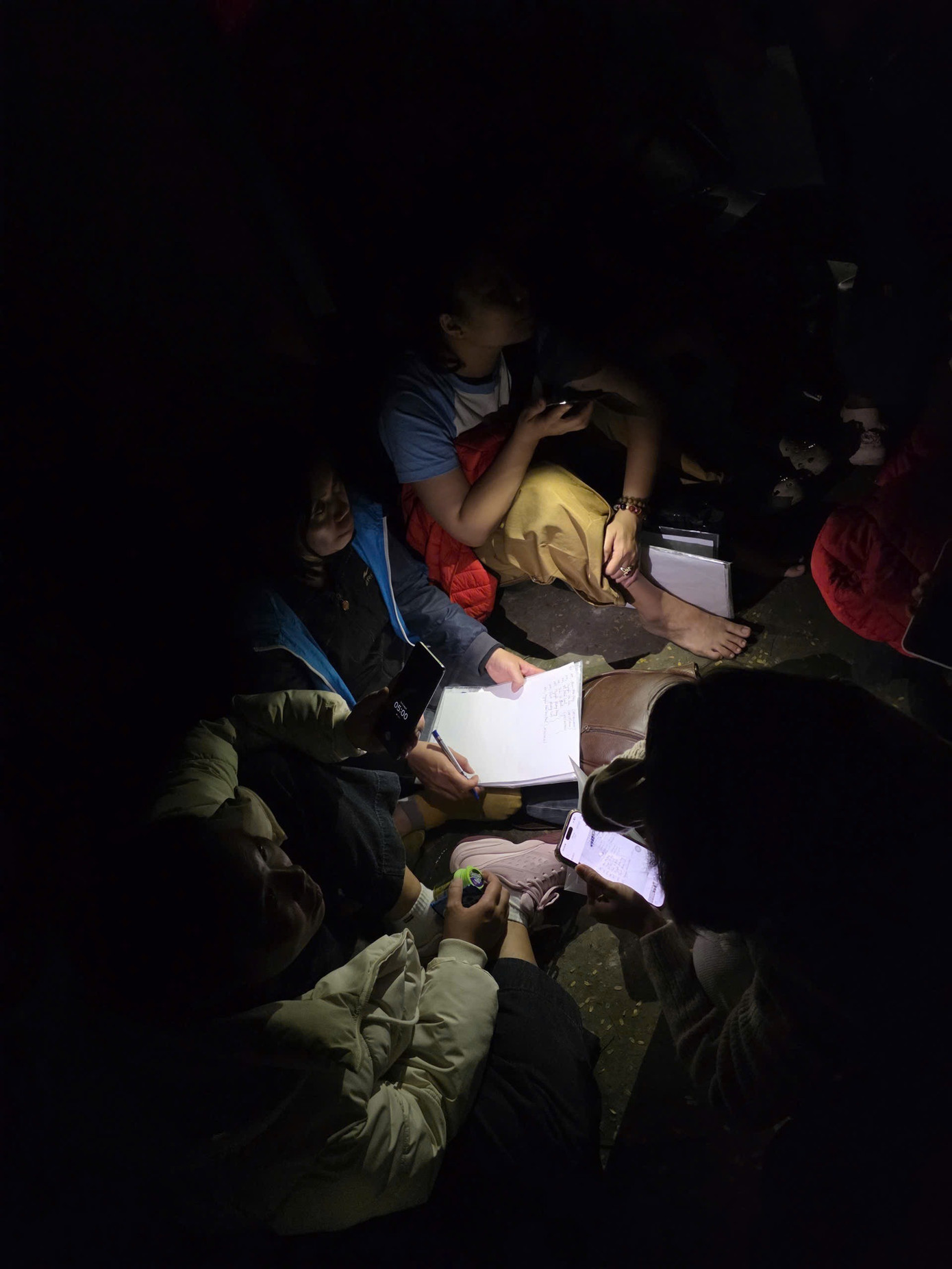 Nhiều phụ huynh xếp hàng từ đêm, phải soi đèn từ điện thoại để ghi số thứ tự vào tờ giấy.