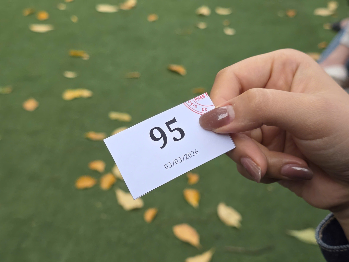 Một phụ huynh mừng húm vì xếp được số 95.