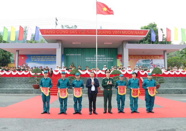 Lãnh đạo Bộ Quốc phòng và UBND thành phố Đà Nẵng trao cờ lưu niệm tặng các lực lượng tham gia hội thi, hội thao.