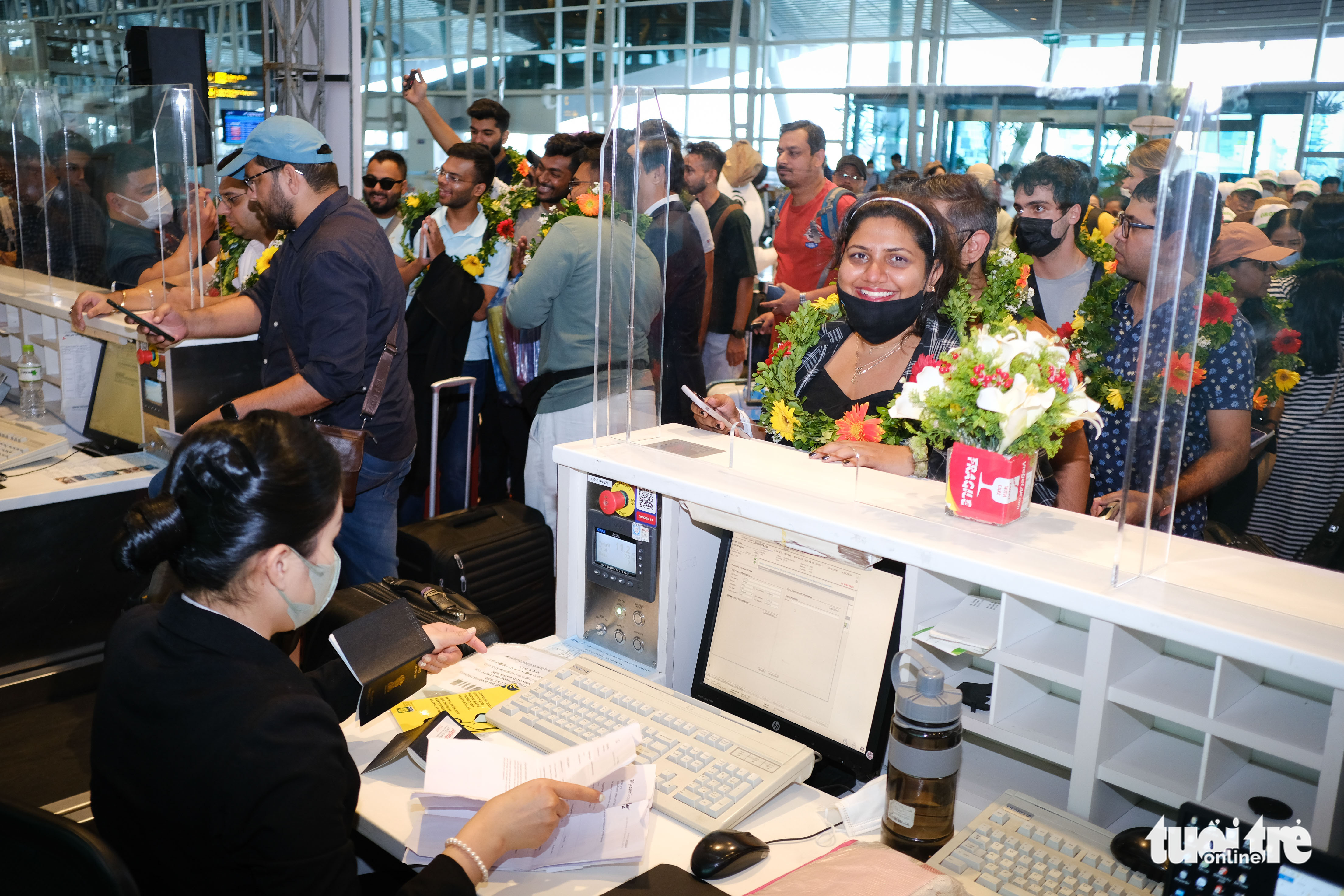 Những du khách Ấn Độ đầu tiên trở về nhà từ đường bay thẳng Đà Nẵng - Ảnh: TẤN LỰC