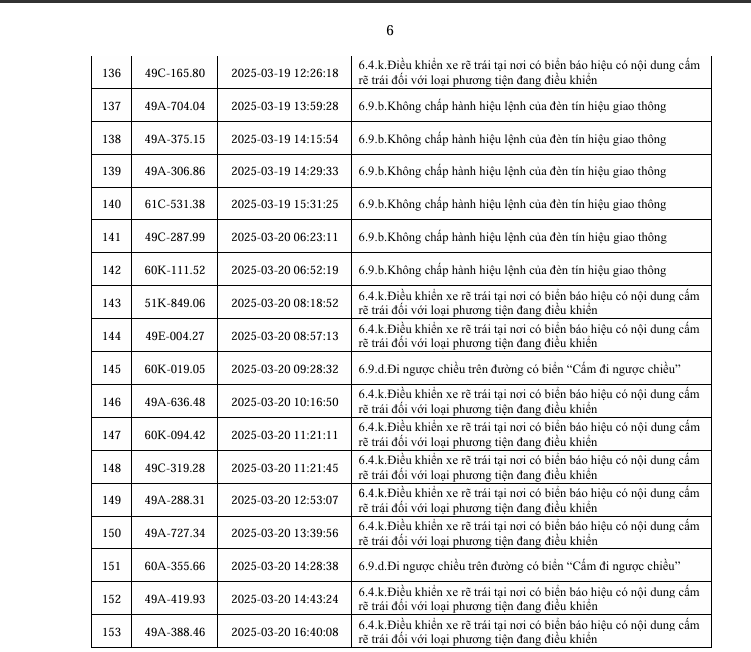 Mới đây, Công an tỉnh Lâm Đồng đã công bố danh sách phạt nguội tại TP Đà Lạt. Theo đó, từ ngày 1/3/2025 đến ngày 31/3/2025, TP Đà Lạt ghi nhận 153 lượt vi phạm giao thông đường bộ trên địa bàn thành phố.