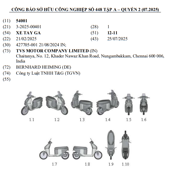 Theo dữ liệu tại Quyển 2 thuộc Công báo số 448 tập A do Cục sở hữu trí tuệ Việt Nam vừa đăng tải, xuất hiện một mẫu xe máy mới được công ty TVS Motors (Ấn Độ) đăng ký bản quyền kiểu dáng công nghiệp.