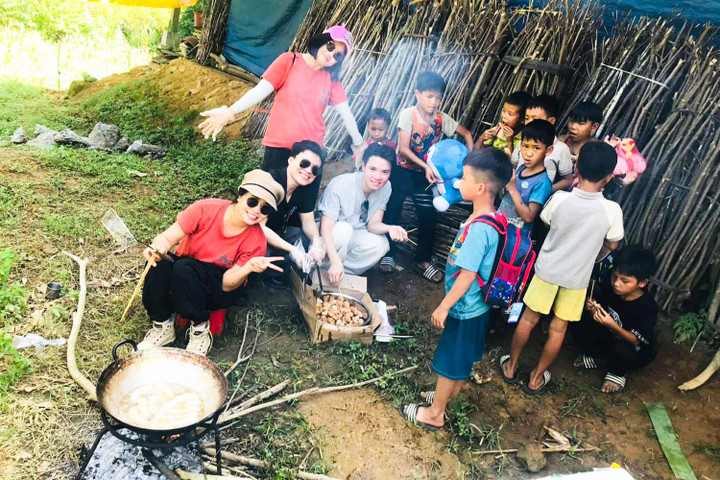 Những thành viên của nhóm thiện nguyện Bếp Củi mang bữa ăn ấm đến với trẻ em vùng sâu, vùng xa. (Ảnh: N.Q.T.)