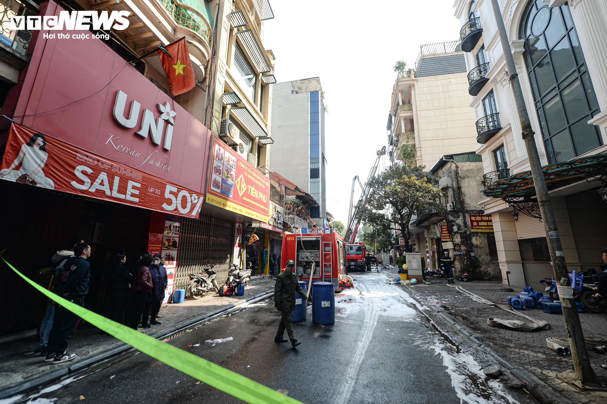 Khu vực xung quanh được bảo vệ nghiêm ngặt để bảo đảm an toàn cho người dân, đồng thời phòng ngừa nguy cơ cháy tái phát.