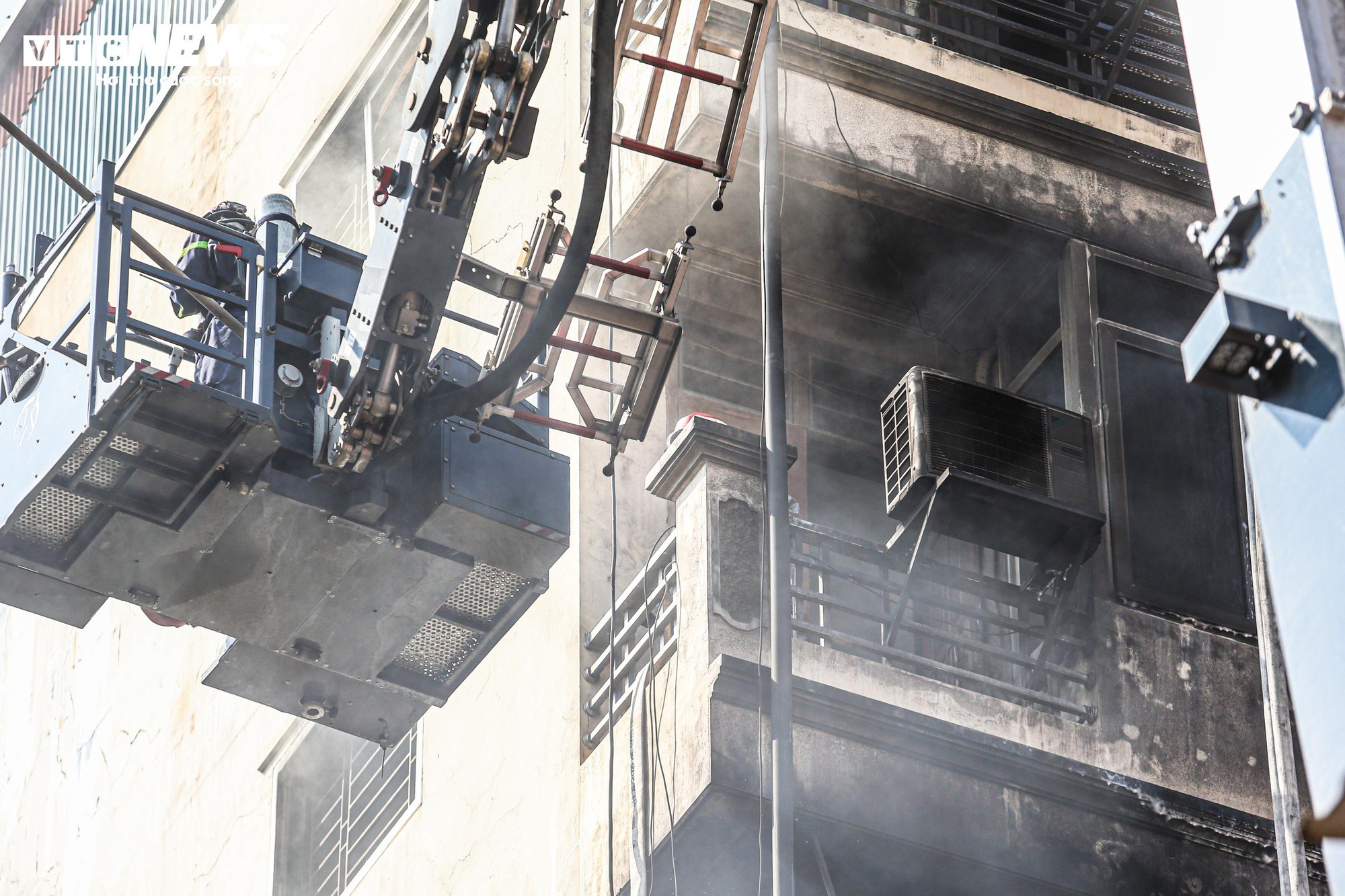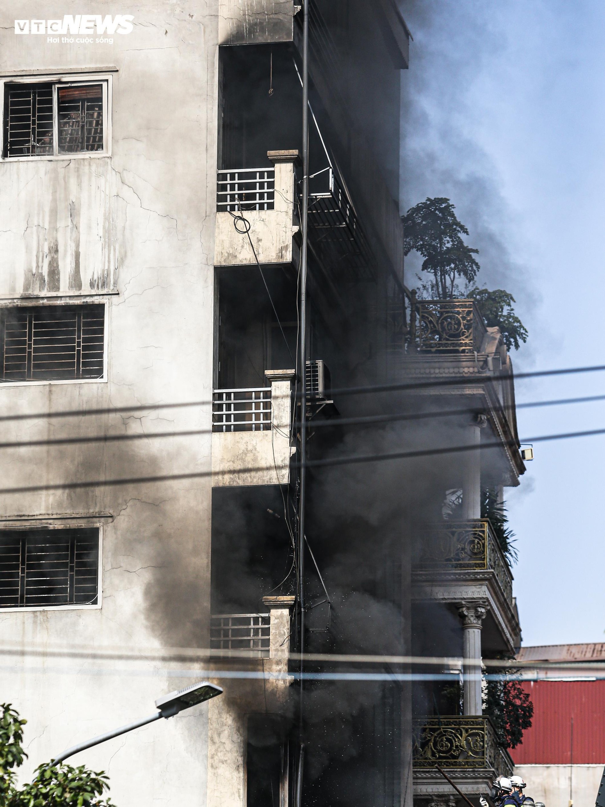 Theo ghi nhận của PV Báo Điện tử VTC News, đến gần trưa cùng ngày, lực lượng chức năng cơ bản khống chế được đám cháy. Tuy nhiên, bên trong ngôi nhà, khói vẫn âm ỉ, bốc ra từ các tầng trên.