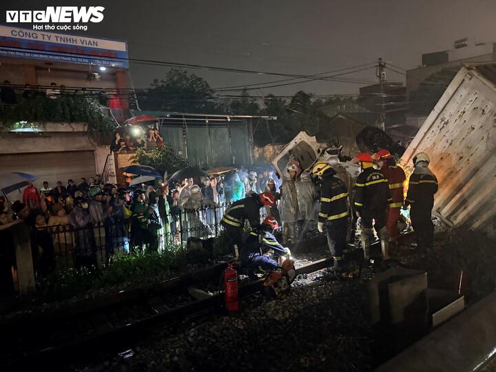 Hiện trường vụ tàu hỏa húc văng ô tô tải ở Hà Nội