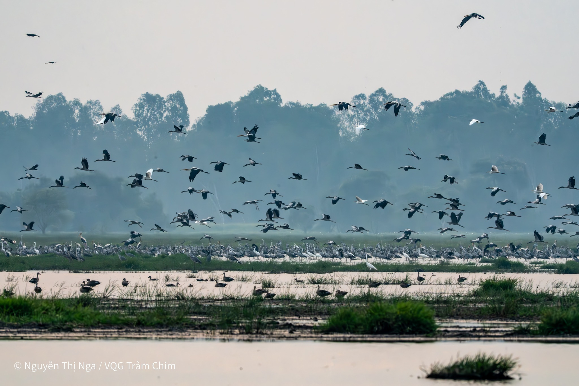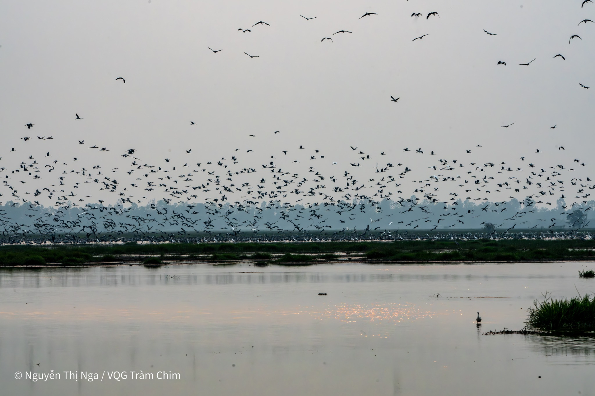 Suốt từ dấu mốc 2004 ấy, chị Nga đã thầm lặng đi qua biết bao mùa nước nổi, mùa khô, chứng kiến những thăng trầm của hệ sinh thái với một niềm tin sắt đá rằng thiên nhiên sẽ quay trở lại nếu con người biết nâng niu. Sự kiên trì đó cuối cùng đã được đền đáp khi từ giữa năm 2022 đến nay, ký ức xưa cũ một lần nữa sống lại thành hiện thực. Những đàn chim di cư quay về với số lượng hàng ngàn cá thể, tạo nên khung cảnh rộn ràng chưa từng thấy trong suốt hai thập kỷ qua.