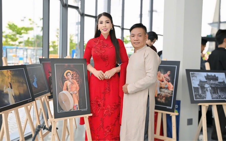 Và đặc biệt, trong 20 tác phẩm của nhiếp ảnh gia Thái Nhàn được trưng bày tại sự kiện thì có hình ảnh của Lý Hương. Bức ảnh được thực hiện vào tháng 6 năm nay. Trong hình, chị mặc áo dài với nón ba tầm.