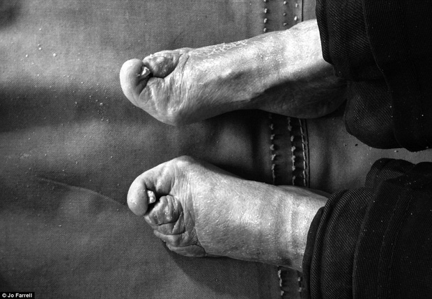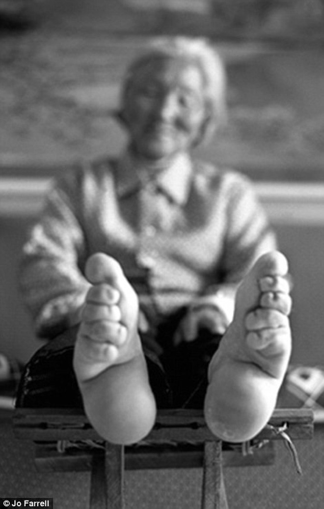 Đây là cụ bà Trương Vân Anh, sinh năm 1927, bó chân từ năm 7 tuổi. Hình ảnh của bà được chụp bởi nhiếp ảnh gia người Anh Jo Farrell.