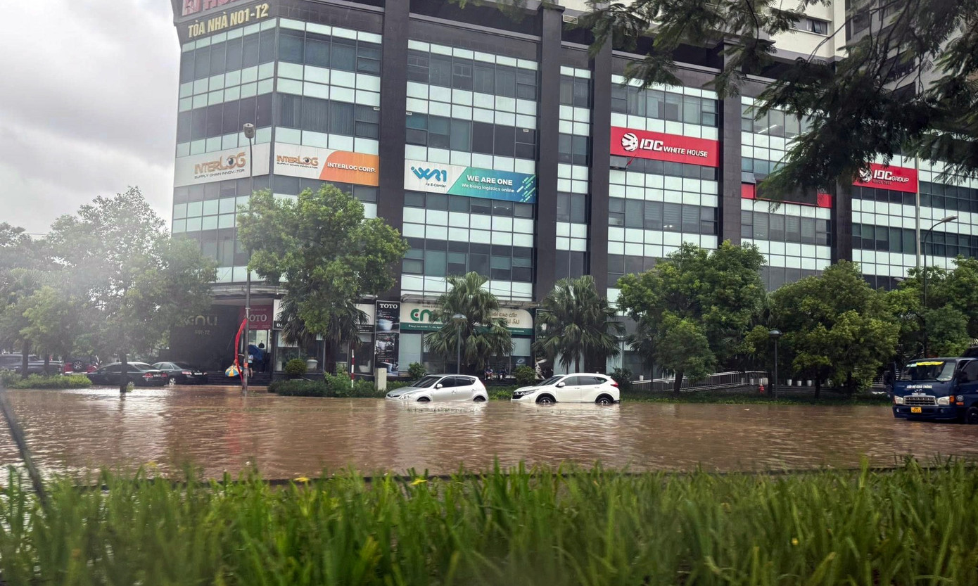 Khu đô thị Starlake cũng rơi vào tình trạng tương tự, nhiều tuyến đường ngập nặng. Ảnh: MXH.