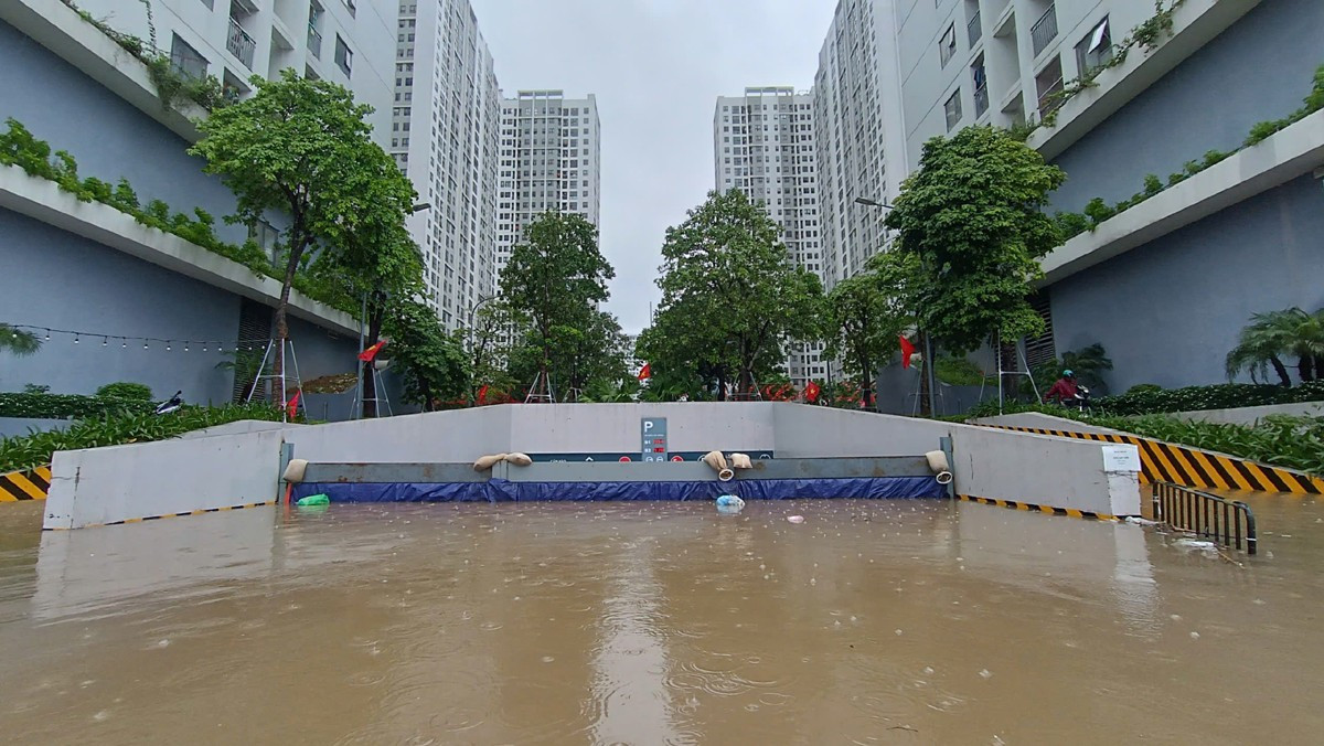 Tại khu đô thị Nam Thăng Long (Ciputra) - khu đô thị nhà giàu cũng bị ngập nặng sau trận mưa kéo dài. Ảnh: MXH.