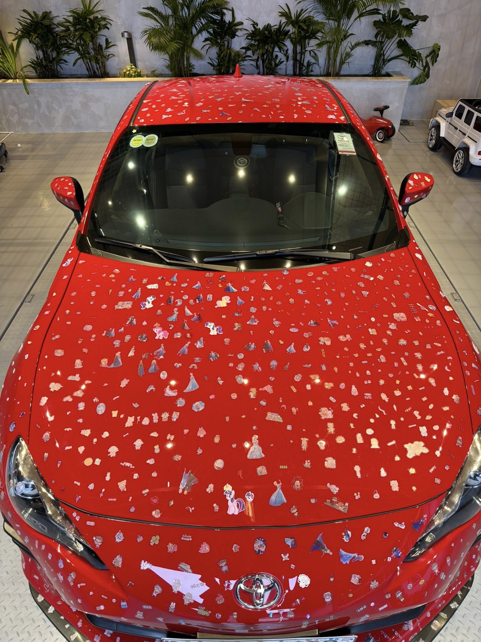 Tuy nhiên mới đây - tối 14/9, Cường Đô La phải kêu trời vì màn nghịch ngợm của Suchin và Sutin với 1 trong số chiếc xe yêu thích: 2 nhóc tì dán sticker kín chiếc Toyota 86.