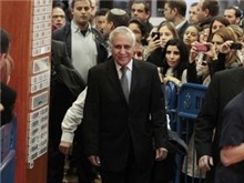 Cựu tổng thống Israel Moshe Katsav (giữa) trong phiên xử.Ảnh: Reuters