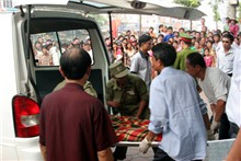 Xác nạn nhân được chuyển ra xe cứu thương. Ảnh: Khánh Chi.