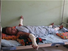 Bà Hà đang điều trị tại bệnh viện với vết bỏng toàn thân. (Ảnh: Phúc Sinh)