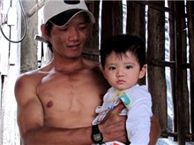 Bé Kiệt sau khi được cha cứu lên từ ao cá. Ảnh: Thụy Du.