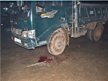 Khi PV tiếp cận, tại hiện trường vẫn còn một thanh típ nước dài khoảng 40cm, một bên là vũng máu chảy lênh láng cạnh chiếc xe tải.