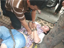 Tuấn bị nhân viên tri hô quần chúng vây bắt quả tang.