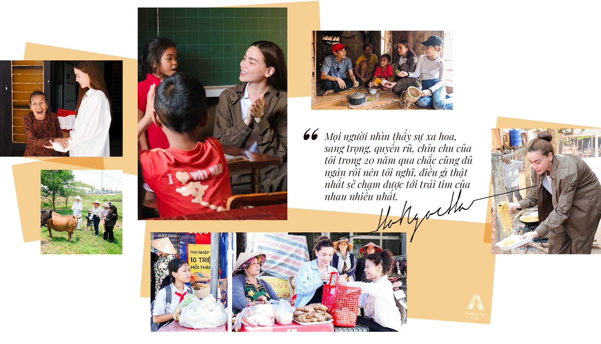 Chị rất thẳng thắn và tâm huyết khi nói: “Làm live show thì thỏa mãn nhưng một tuần sau hết cái cảm giác đó. Nhưng nếu bây giờ Hà cầm mấy chục tỉ đó mình đi làm từ thiện, giúp cho được hàng trăm, hàng ngàn người, chắc chắn điều đọng lại không chỉ có một tuần". Lý do gì khiến chị có được suy nghĩ như vậy: Thời gian, độ tuổi, trải nghiệm?