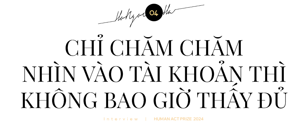 Tôi nghĩ, nếu tôi cho tiền tiêu rồi cũng hết. Nhưng nếu tôi giúp con đường học tập, các con sẽ hiểu đó là con đường duy nhất phải cố gắng để thay đổi hoàn cảnh. Nếu tôi cho một số tiền thì cũng chỉ là trước mắt, không đưa đến bài học nào. Tôi muốn các con hiểu đây là thành quả các con đạt được và phải cố gắng hơn nữa để gặt trái ngọt trong tương lai.