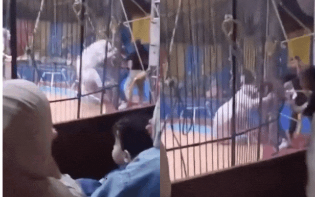 Đoạn video ghi lại sự việc cho thấy một trong những con hổ bị nhốt trong chiếc lồng lớn đã bất ngờ ngoạm lấy cánh tay của nghệ sĩ xiếc khi anh ta vô tình đưa tay xuyên qua các thanh sắt. Con hổ hung dữ gầm lên với cánh tay của nạn nhân trong miệng, trong khi khán giả xung quanh không ngừng la hét trong hoảng loạn và sợ hãi.