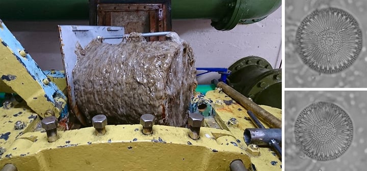 Tảo indavia bám vào máy móc (Ảnh: NIWA)
