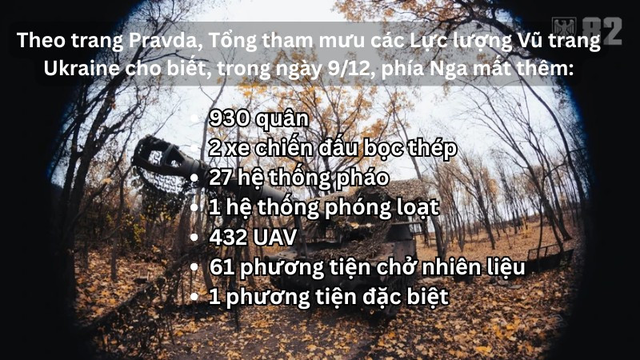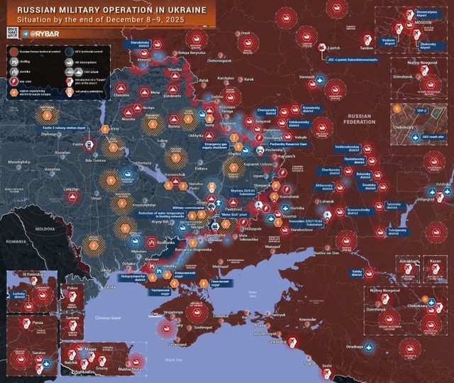 Bản đồ chiến sự Ukraine ngày 09/12/2025. (Ảnh: Rybar)