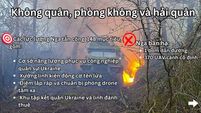 Bộ Quốc phòng Nga cho biết đã tấn công xưởng linh kiện động cơ tên lửa, phá hủy tăng T-64 của Ukraine trong ngày.