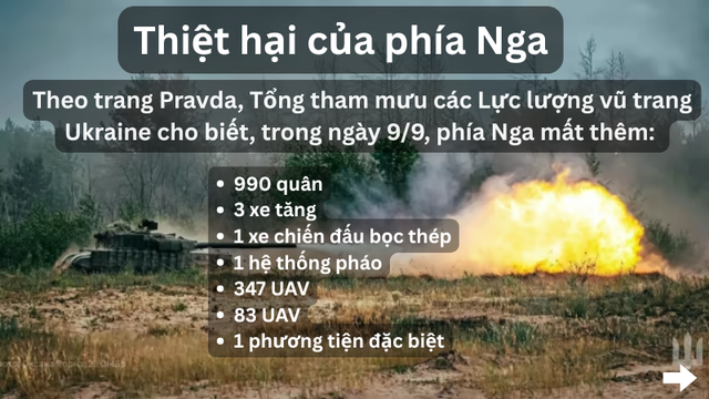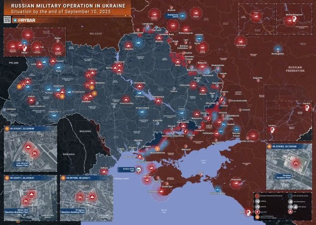 Bản đồ chiến sự Ukraine ngày 10/9/2025. (Ảnh: Ryba)