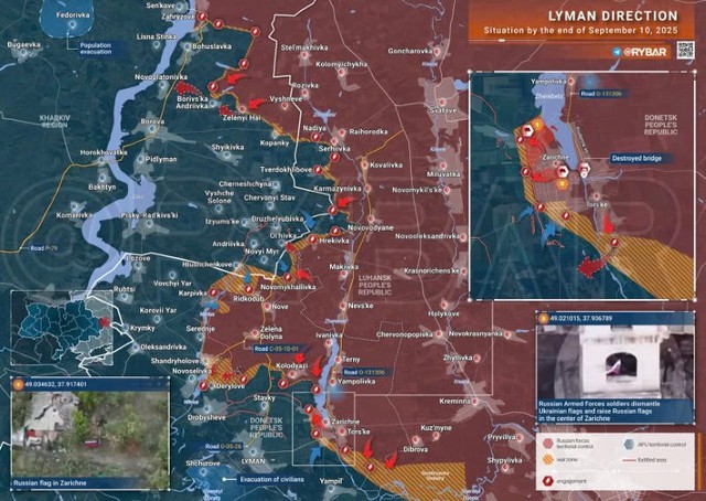 Bản đồ chiến sự Ukraine ngày 10/9/2025, hướng Lyman (Ảnh: Rybar)