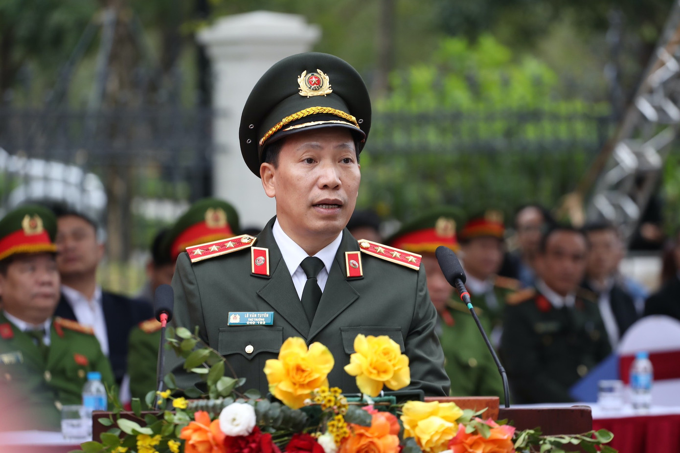 Thượng tướng Lê Văn Tuyến, Thứ trưởng Bộ Công an phát biểu tại buổi diễn tập.