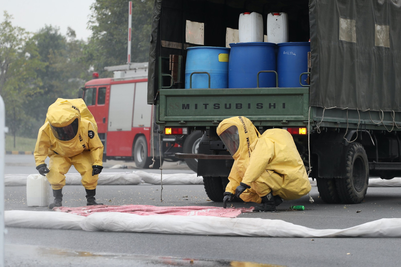 Kịch bản giả định về sự cố cháy, nổ, tai nạn trong buổi diễn tập gồm 8 tình huống xảy ra liên tiếp, đồng thời, đám cháy phát triển nhanh chóng, có hàng trăm người bị mắc kẹt cần phải triển khai đồng bộ nhiều biện pháp chữa cháy, ngăn chặn cháy lan, ứng phó sự cố hóa chất, cứu người bị nạn,...
