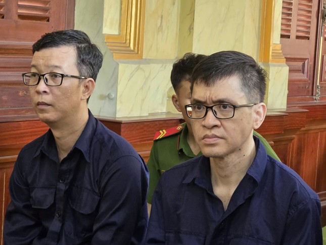 Bị cáo Hoàng Minh Bá (phải) tại phiên tòa.