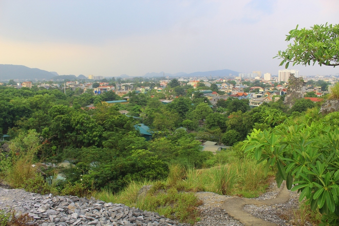 Sau chừng 20 phút leo núi, du khách có thể thư thái tận hưởng không khí trong lành trên đỉnh núi Nhồi. Ngắm cảnh sắc non xanh nước biếc và cả những công trình cao chót vót phía trung tâm TP Thanh Hóa.