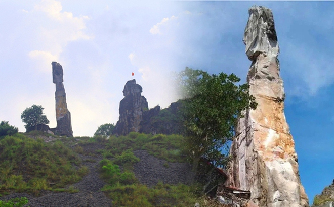Nổi bật giữa màu xanh của mây trời, là khối đá sừng sững cao chừng 20m. Trải qua ngàn năm, suốt bốn mùa Xuân - Hạ - Thu - Đông, vẫn "trơ gan cùng tuế nguyệt". Người dân nơi đây tin rằng, đây là khối đá mang hình hài của người phụ nữ thủy chung chờ chồng nghìn năm đến hóa đá.
