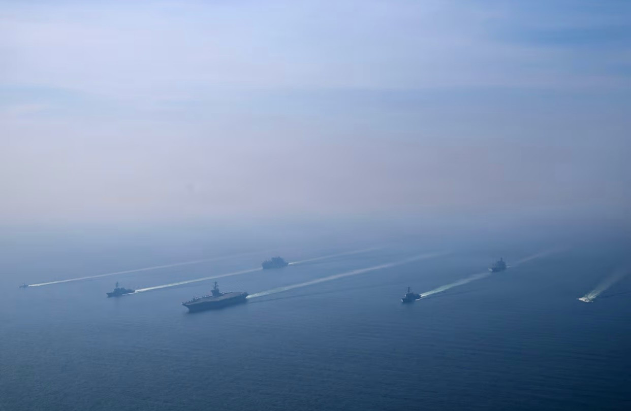 Nhóm tác chiến do tàu sân bay Abraham Lincoln dẫn đầu di chuyển trên Biển Ả-rập, ngày 6/2. (Ảnh: Reuters)