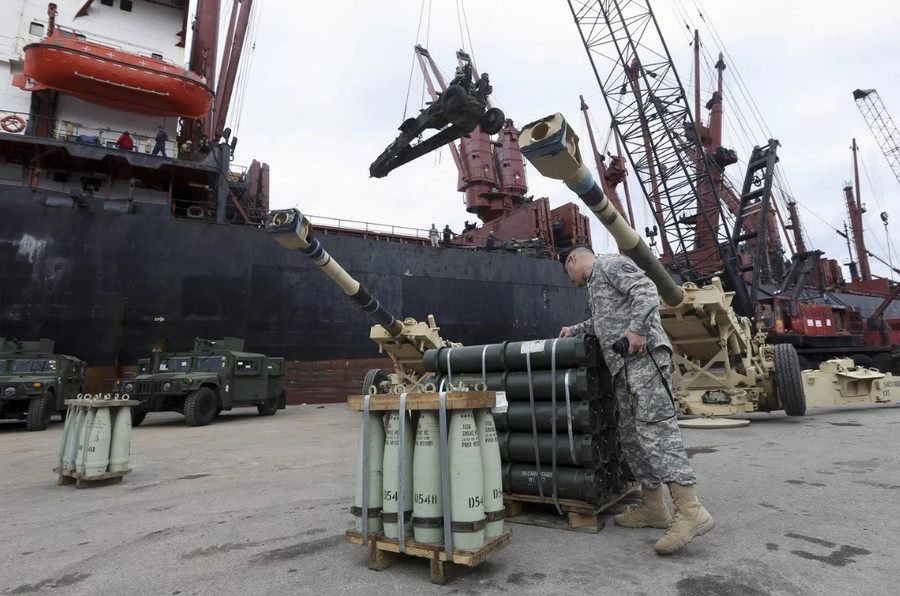 Binh sĩ Mỹ kiểm tra vũ khí được điều đến Trung Đông.