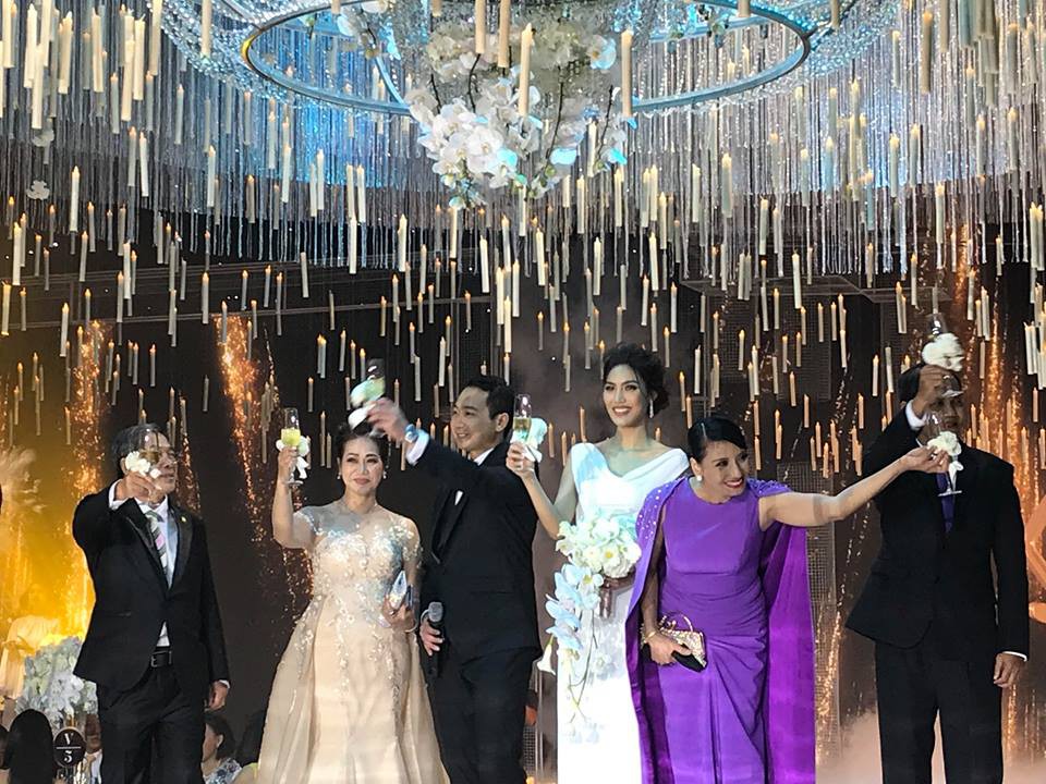 Ngày trọng đại của cặp đôi có sự góp mặt của dàn nghệ sĩ nổi tiếng showbiz như Hà Hồ, Mâu Thuỷ, Lệ Hằng, Midu,...