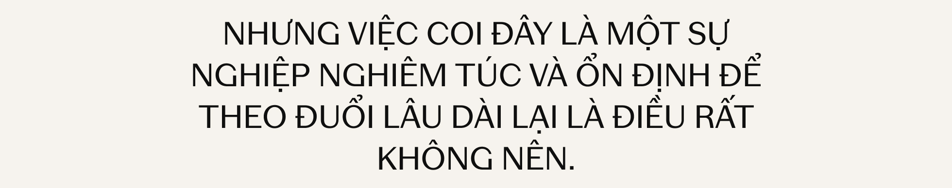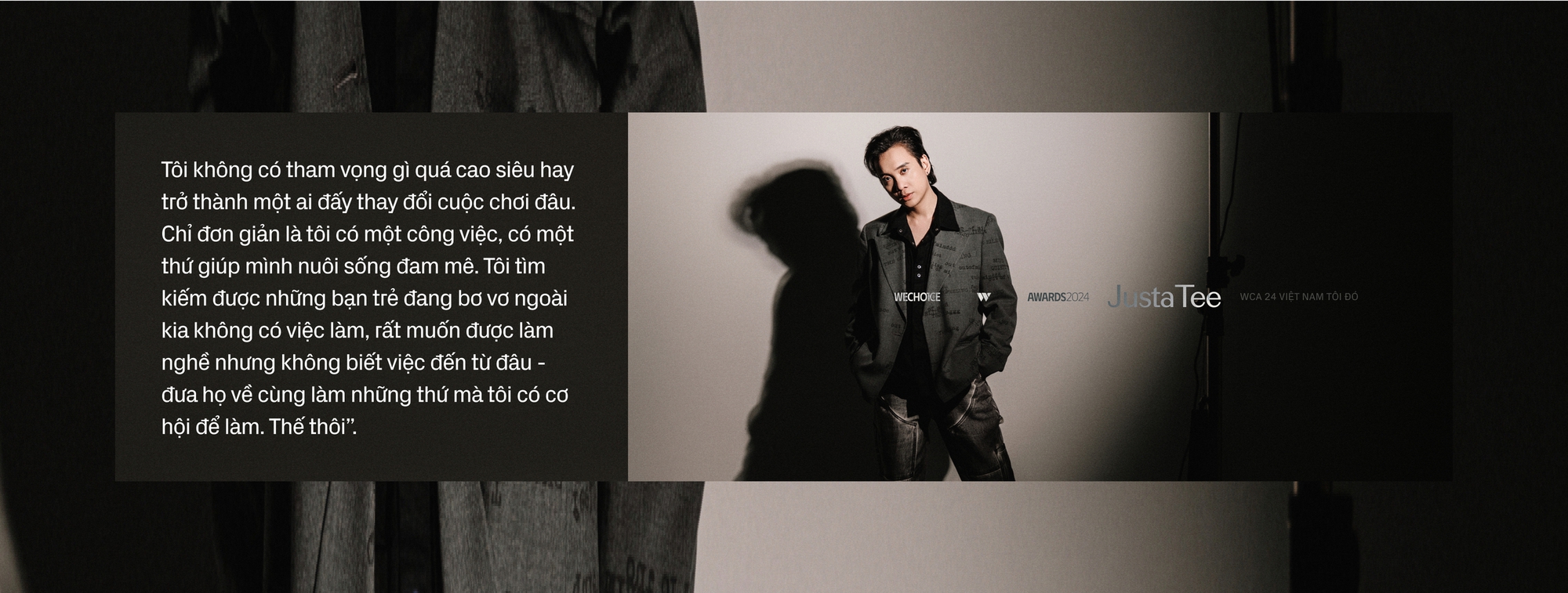 Tôi không có tham vọng gì quá cao siêu hay trở thành một ai đấy thay đổi cuộc chơi đâu. Chỉ đơn giản là tôi có một công việc, có một thứ giúp mình nuôi sống đam mê. Tôi tìm kiếm được những bạn trẻ đang bơ vơ ngoài kia không có việc làm, rất muốn được làm nghề nhưng không biết việc đến từ đâu - đưa họ về cùng làm những thứ mà tôi có cơ hội để làm. Thế thôi".
