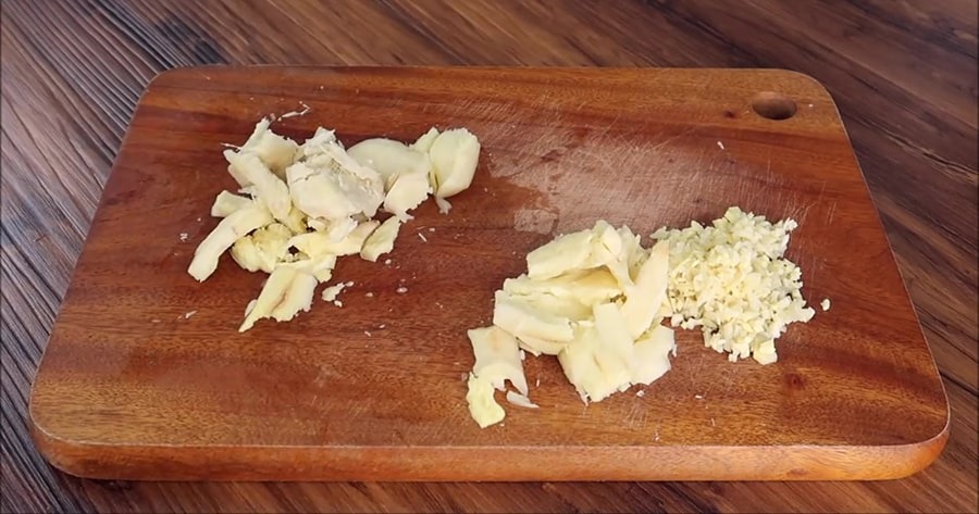 Gừng có tính ấm và mùi thơm mạnh, giúp khử mùi tanh của thịt gà rất hiệu quả. Khi sơ chế, có thể đập dập gừng rồi chà trực tiếp lên thân gà cùng với muối. Cách này đặc biệt phù hợp với gà ta hoặc gà nuôi lâu ngày, giúp thịt gà thơm hơn ngay từ bước đầu.