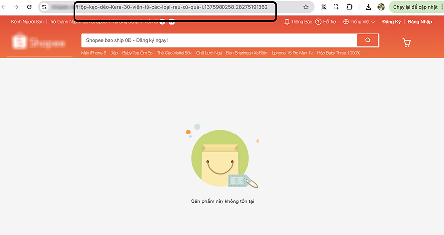 Mặc dù kẹo rau KERA vẫn có thể search trên MXH nhưng khi click vào link mua hàng thì sản phẩm này đã không còn tồn tại nữa.