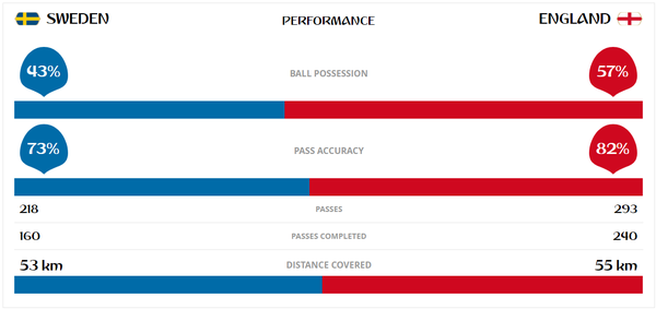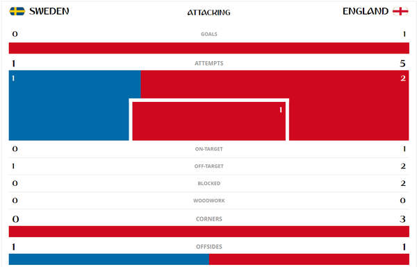 - NGUY HIỂM QUÁ!!! Thụy Điển chơi chủ trương tấn công, nhưng lại chính là đội tạo ra được những tình huống tấn công nguy hiểm hơn. Vừa rồi Thụy Điển suýt chút nữa có tình huống đối mặt thủ môn Anh nhưng đường chọc khe của họ lại bị chặn đứng.