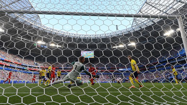 - VÀO!!! Maguire vừa bật cao đánh đầu tung lưới Thụy Điển sau pha đá phạt góc đầu tiên của Tam sư. Chính niềm hy vọng của Thụy Điển, Forsberg là người theo kèm Maguire nhưng không thành công. Cần biết, phòng ngự bóng bổng cũng chính là điểm mạnh của Thụy Điển.