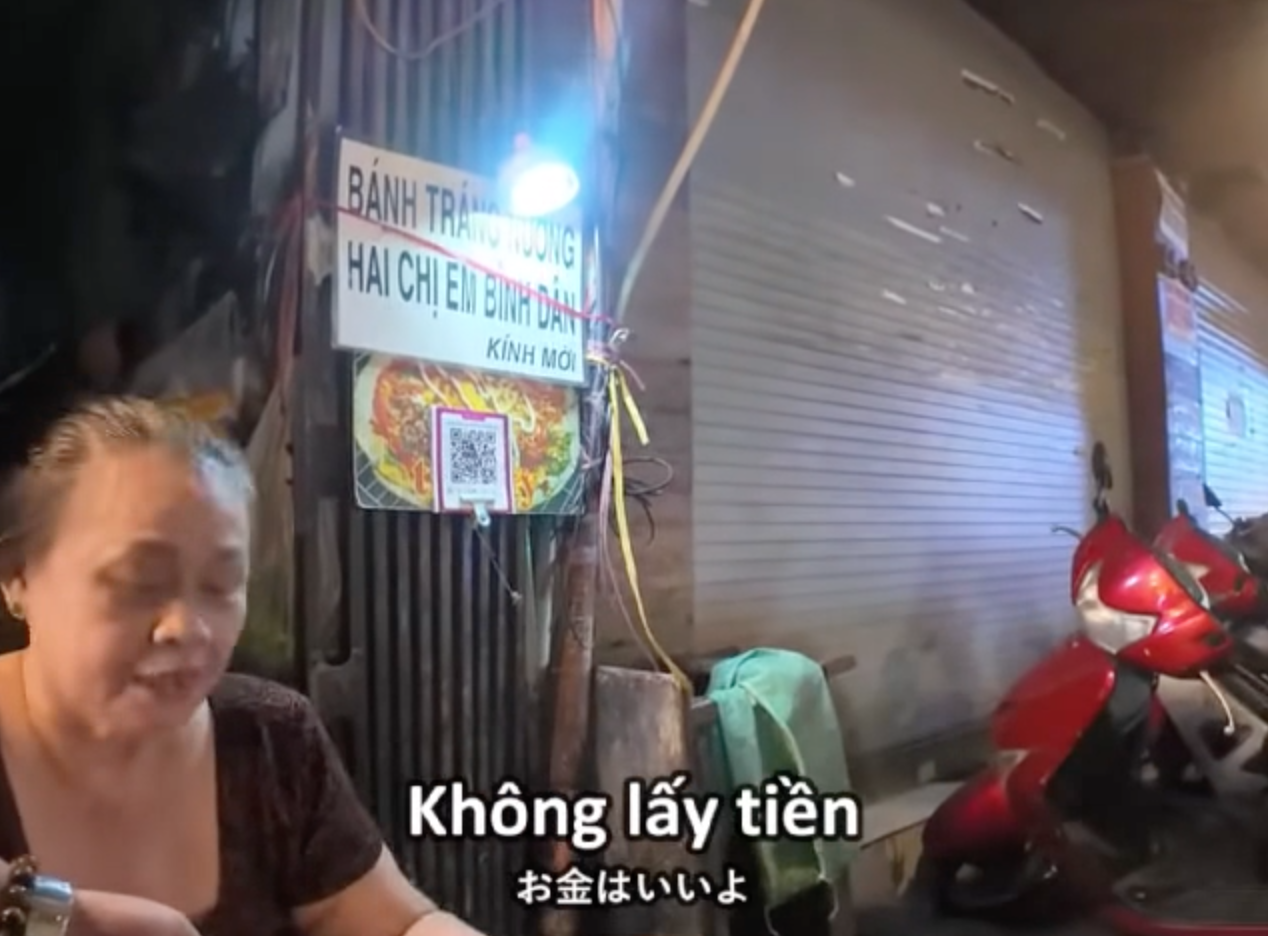 Trước đề nghị của vị khách Nhật, người bán hàng đồng ý, nhanh tay nướng ngay một chiếc bánh không vị cho cậu bé. Tới lúc trả tiền, khi người bố hỏi giá, điều vô cùng bất ngờ đã xảy ra khi người bán hàng lại mỉm cười đáp lại 2 lần: "Không lấy tiền đâu".
