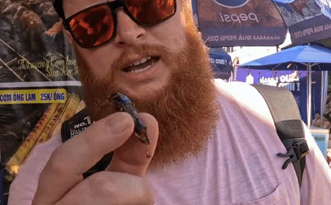 Chàng khách Tây nhận xét, sau khi thử 1 lần thì những món ăn từ côn trùng rất dễ gây nghiện. (Video Phúc Mập Vlog)