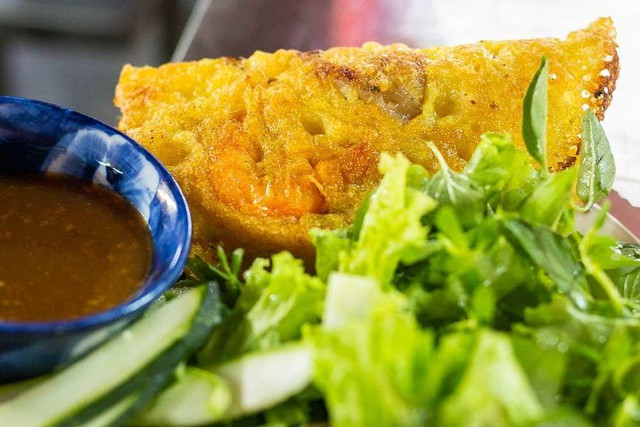 Đặc biệt là vào những ngày trời trở lạnh, thật khó mà cưỡng lại được sự quyến rũ của những chiếc bánh xèo nóng hổi. Với lớp vỏ mỏng, giòn tan trong miệng, bên trong là lớp nhân tôm, mực và giá sống, chấm cùng nước mắm chua chua ngọt ngọt, ăn kèm với các loại rau sống như dưa leo, xà lách, thực khách ăn một sẽ lại muốn ăn hai...