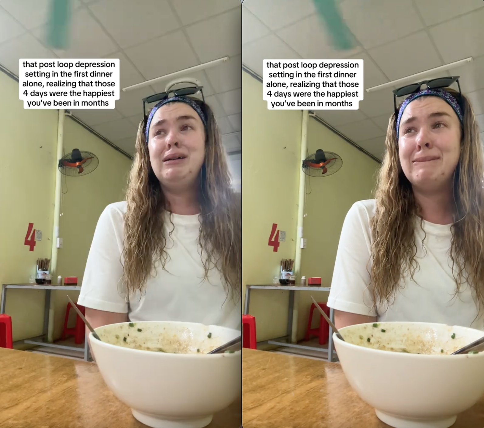 Mới đây, một đoạn clip ghi lại cảnh một cô gái Tây ngồi trong quán ăn nhỏ ở Việt Nam, vừa ăn tối vừa khóc nức nở, nhanh chóng lan truyền trên mạng xã hội. Ban đầu, nhiều người tỏ ra lo lắng, không hiểu chuyện gì đã khiến cô rơi vào trạng thái xúc động đến vậy.