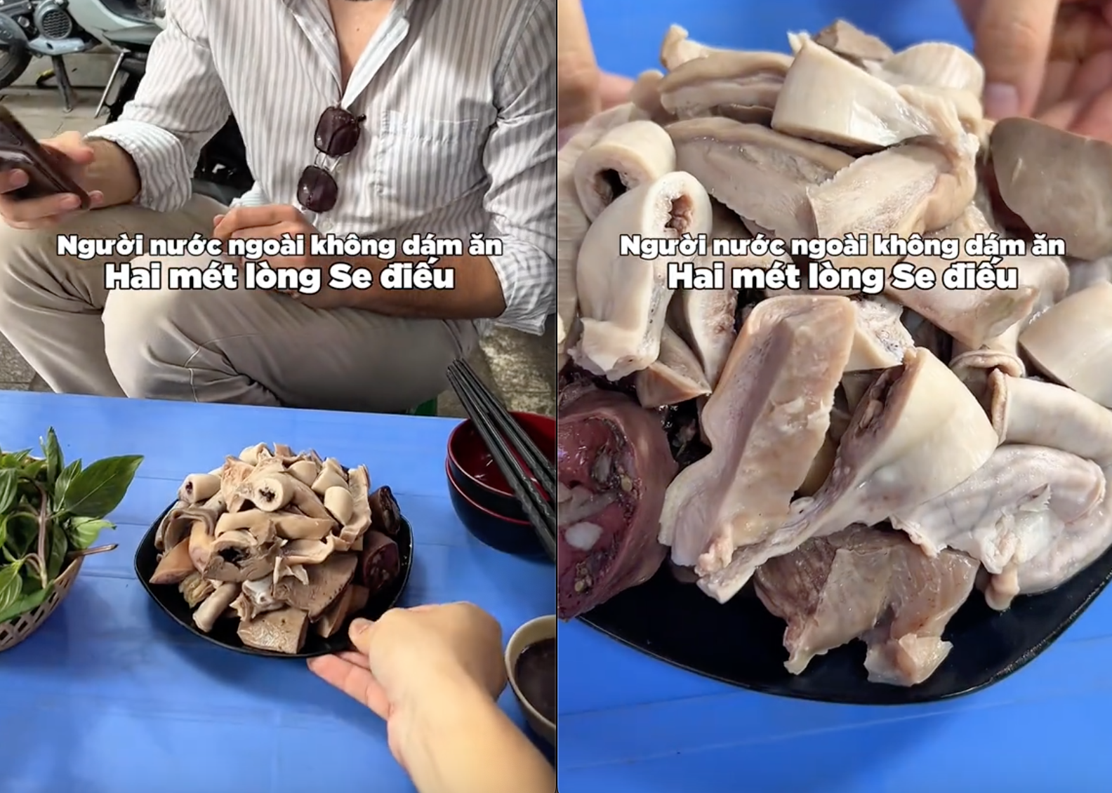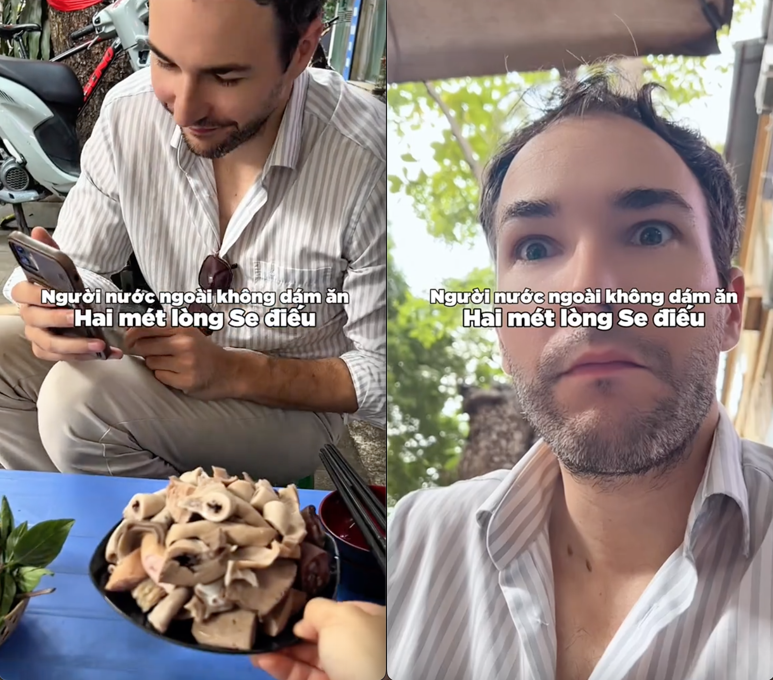 Điển hình là mới đây, một vị khách Tây có tên Will, chủ kênh TikTok Will in Việt Nam (@willinvietnam) đã chia sẻ video ghi lại trải nghiệm lần đầu ăn món lòng se điếu. Video nhanh chóng nhận được sự chú ý lớn vì ai nấy đều tò mò liệu một người ngoại quốc sẽ cảm nhận thế nào về món ăn "khó nhằn" này.