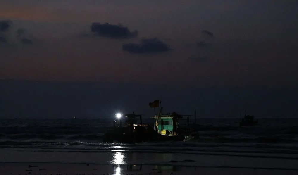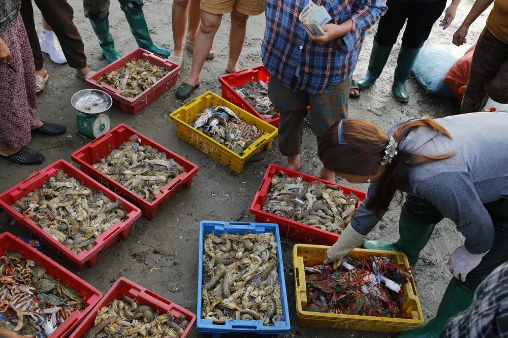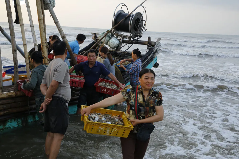 Khoảng 4 giờ rưỡi sáng, nhiều tiếng máy nổ xa xa phía ngoài biển hướng dần vào bờ. Không lâu sau, các loại thuyền và bè mảng cập bờ. Mỗi chuyến bè mảng, thuyền vào bờ chở về rất nhiều loại hải sản. Mùa này, có đủ các loại mực, ghẹ, cua, tôm, bề bề (tôm tít) và các loại cá.